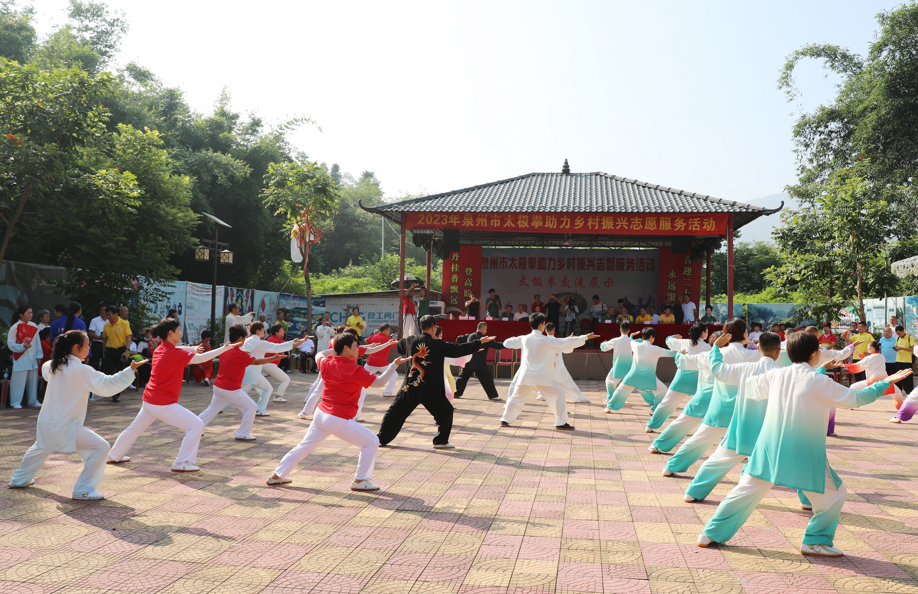 为贯彻落实《体育总局等12部门关于推进体育助力乡村振兴工作的指导意见》,推广普及世界非物质文化遗产——太极拳运动,助力乡村振兴战略实施,近日,泉州市太极拳协会和泉州市社会体育指导员协会联合南安市英都镇人民政府在英都镇开展太极拳助力乡村振兴志愿服务活动。