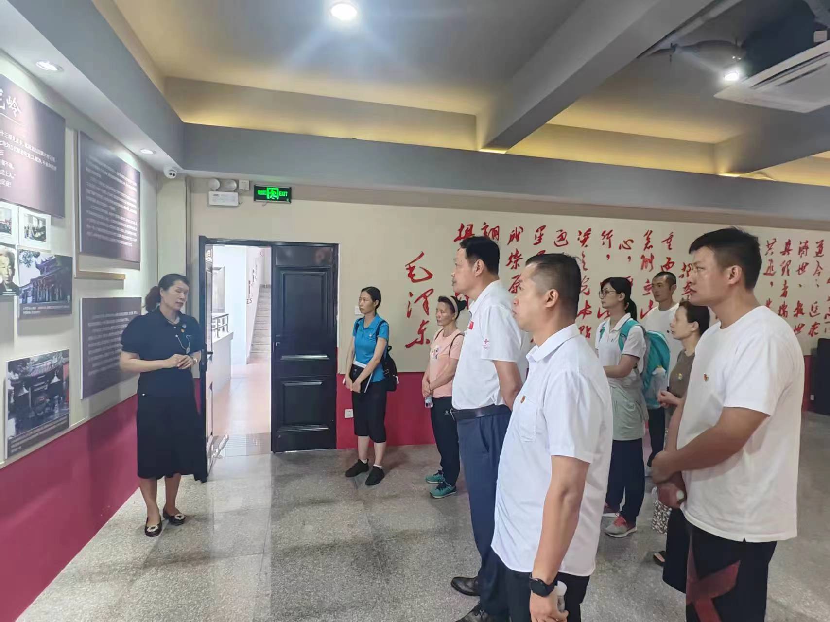 在纪念馆大厅,面对着鲜红的党旗,大家整齐划一地举起右拳,一起重温入党誓词,用铿锵有力的声音传递共产党员不变的初心和使命,向党和人民再次作出庄严的承诺。