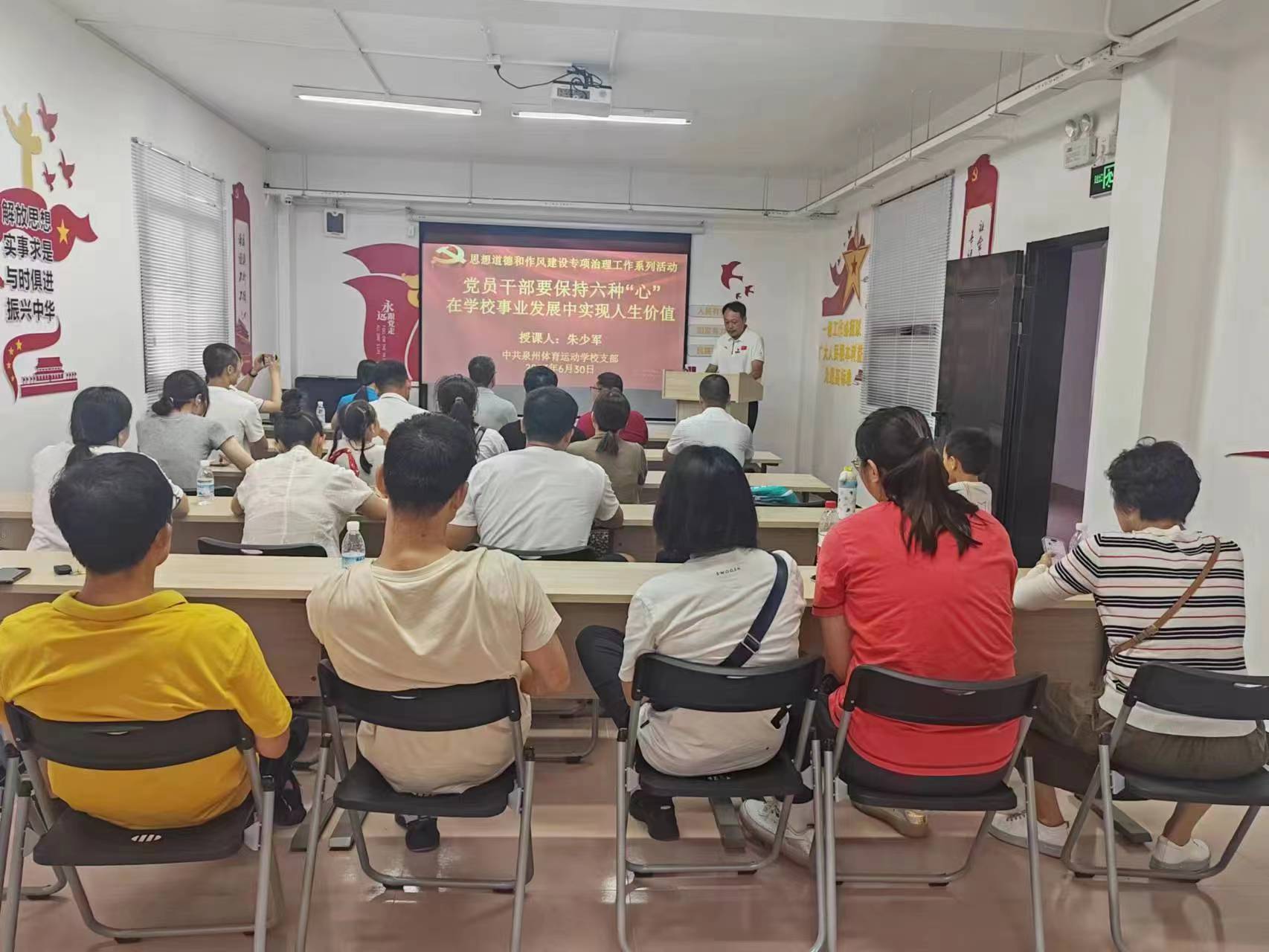 随后,朱少军同志围绕思想道德和作风建设专项治理工作为大家作了题为《党员干部要保持六种“心” 在学校事业发展中实现人生价值 》专题党课。通过党课学习,大家纷纷表示要延续共产党人的精神血脉,对党忠诚、为民谋利、严于律己,在传承红色血脉中不断攻坚克难,从伟大精神中汲取奋进的力量!