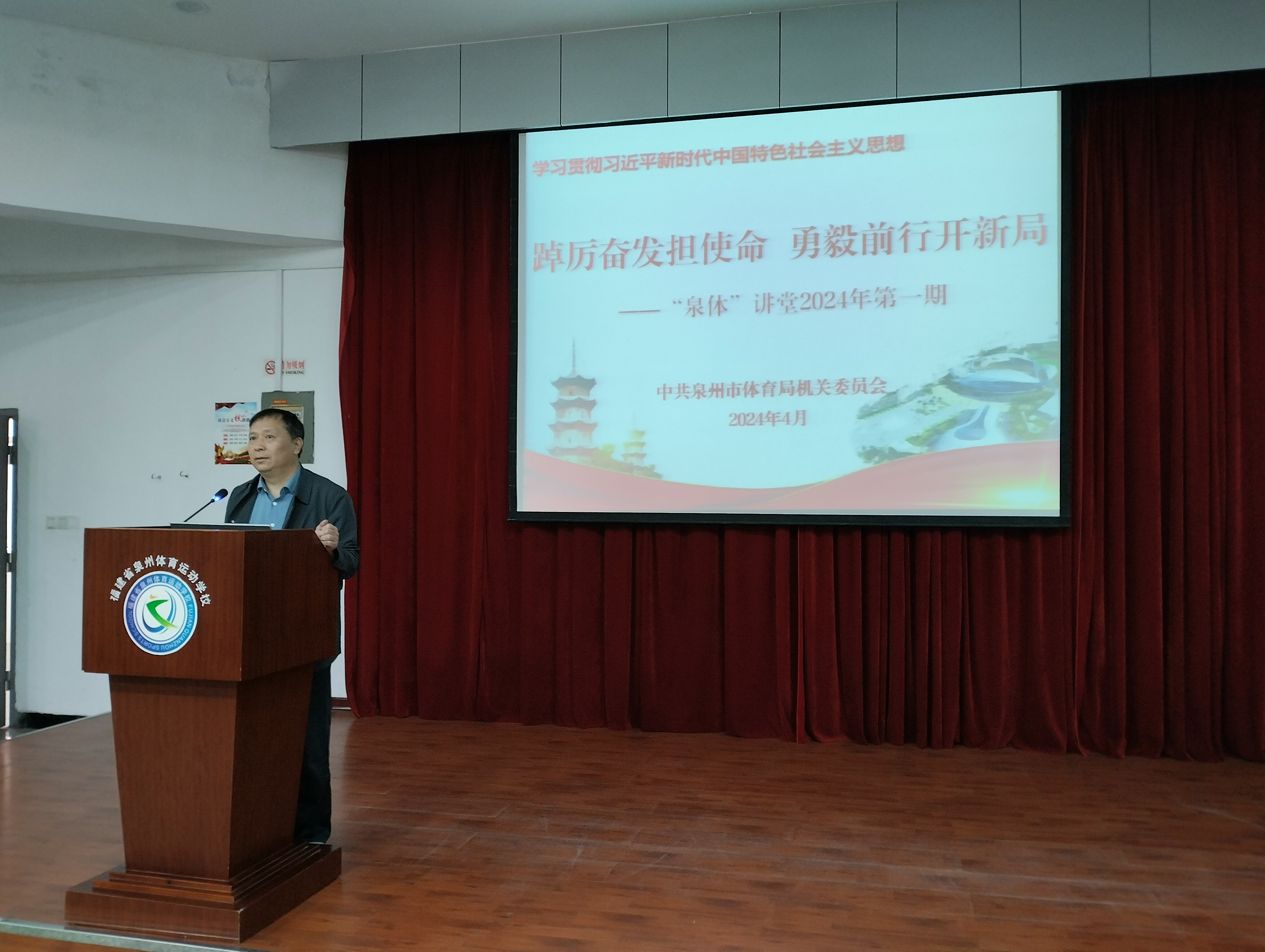 4月10日,为巩固拓展主题教育成果,深化“深学争优、敢为争先、实干争效”行动,市直体育系统2024年第一期“泉体”讲堂在泉州体育运动学校梯形教室举行。市直体育系统全体在编干部、职工共约130余人参加。