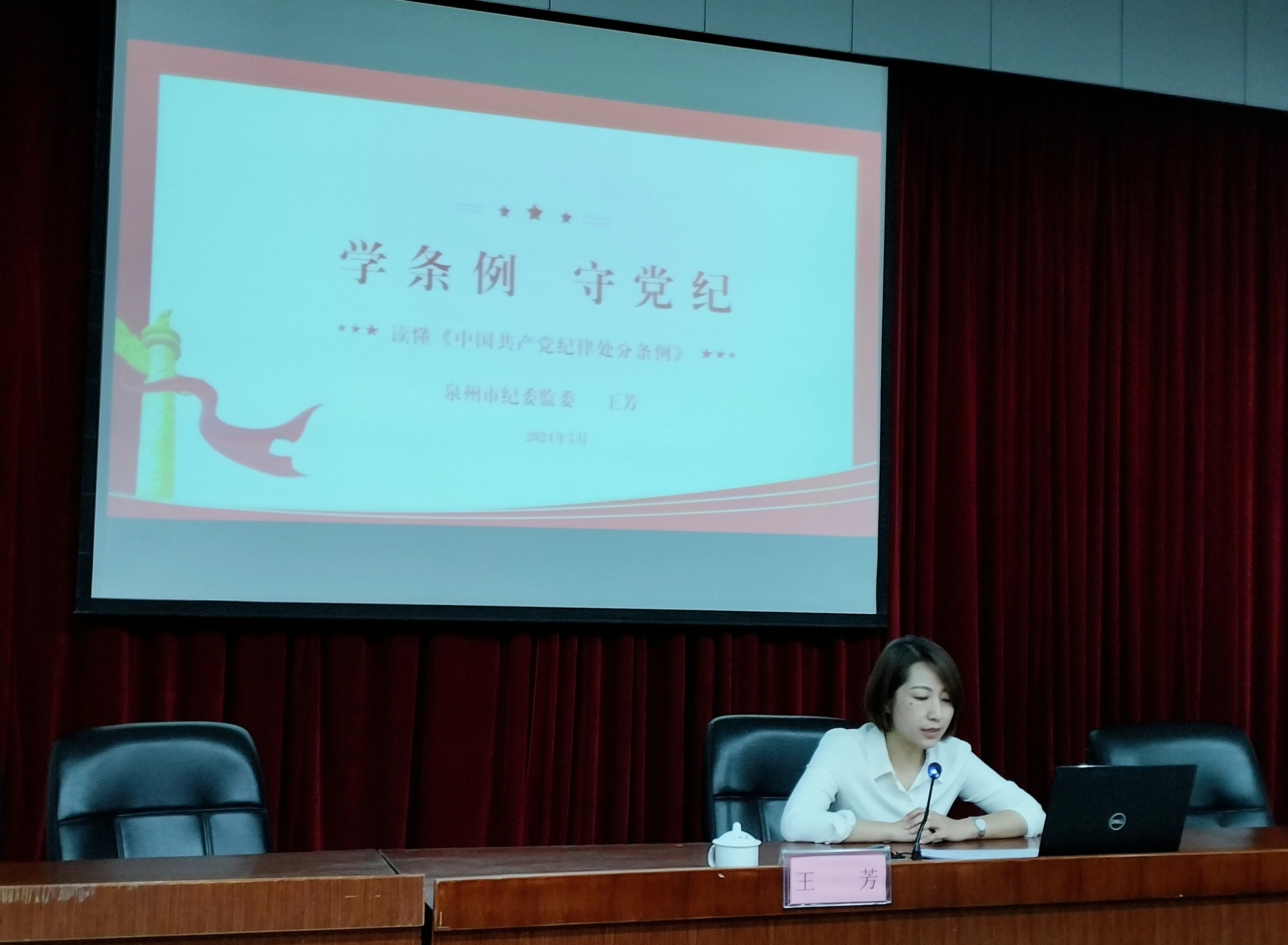 为深入学习贯彻习近平总书记关于开展党纪学习教育的重要讲话和重要指示精神,持续推动党纪学习教育走深走实,5月13日,同人动漫 举办党纪学习教育读书班专题辅导讲座,邀请泉州市纪委监委第三纪检监察室副主任王芳同志以《学条例 守党纪》为题作辅导报告。局机关处级干部、直属单位副科级及以上干部和市直体育系统党员参加。