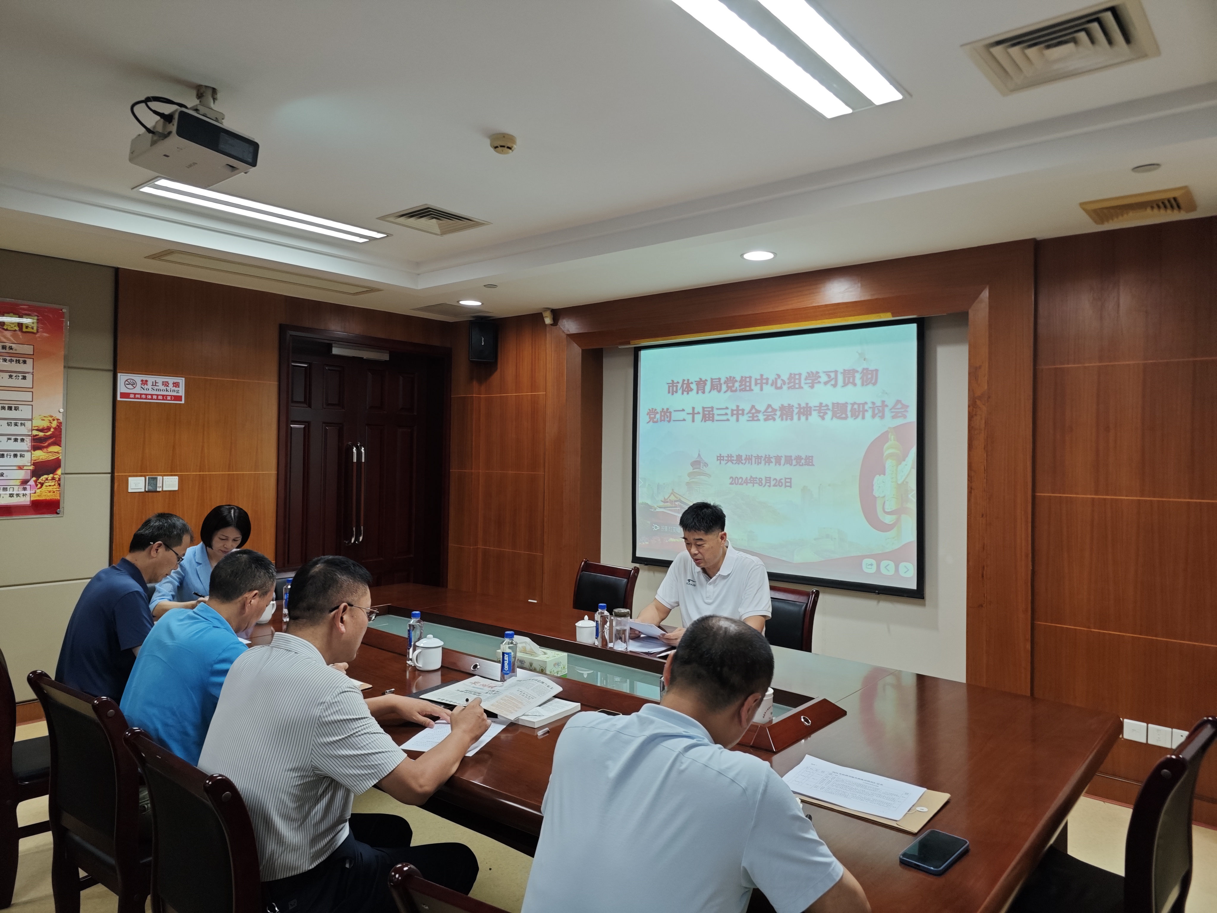 会议强调,举行此次专题学习研讨会,就是要在市直体育系统内作示范,发挥局领导干部带头作用,先学一步、学深一层,更好地带动全系统上下学好悟透党的二十届三中全会精神,谋深做实体育工作,谱写进一步全面深化改革推进中国式现代化的泉州体育新篇章。