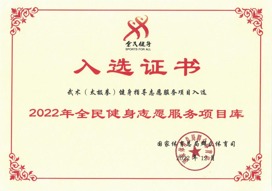同人动漫 积极指导各县(市、区)开展全民健身志愿服务活动,培育全民健身志愿服务品牌项目。近日,国家体育总局2022年全民健身志愿服务项目库名单出炉,泉州石狮市武术(太极拳)健身指导志愿服务项目成功入选,并获得体育总局群体司颁发的证书。