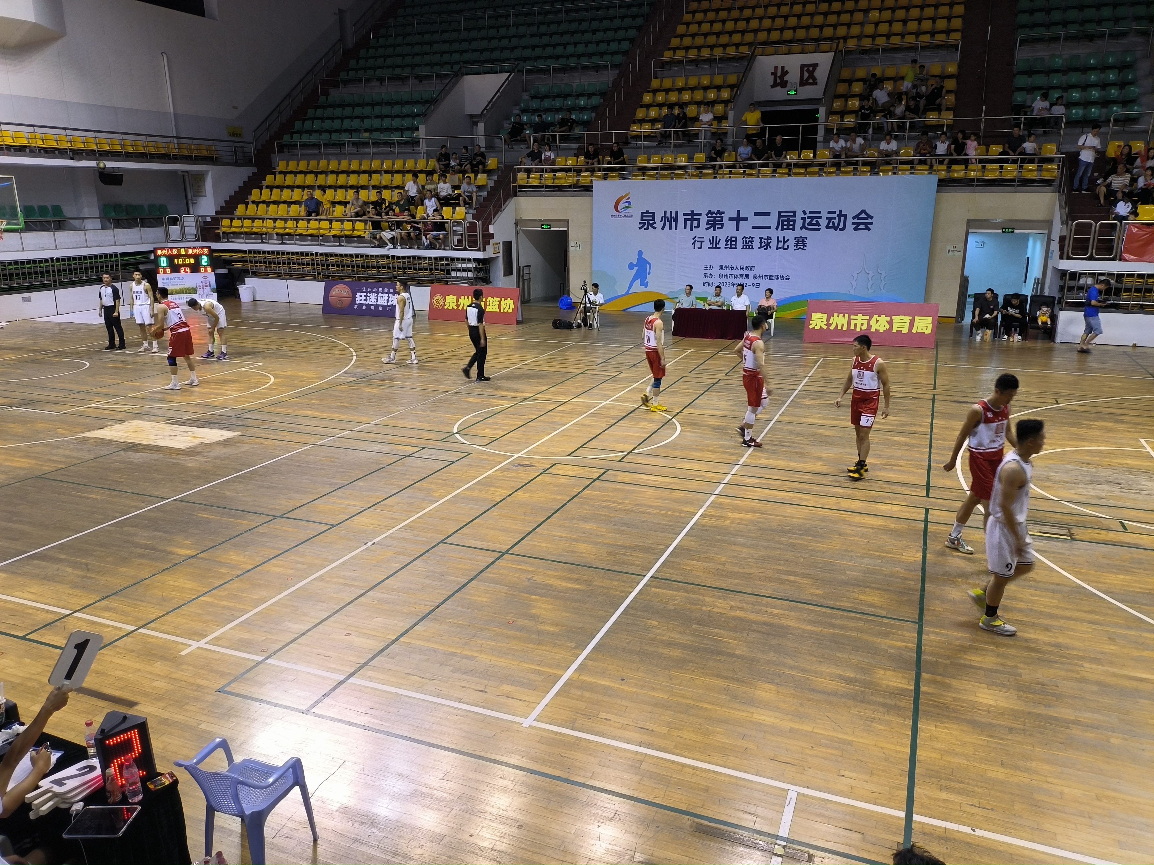 9日晚上的冠军争夺战在泉州人保和泉州公安代表队之间打响。泉州人保代表队吴少雄连续在外线和弧顶高位投中2个3分和1个2分球,率队以10:2获得完美开局;泉州公安代表队稳住阵脚,队员们相继突破内线得手,拉进比分。一节战罢,泉州公安代表队16:22落后。第二节一开始,泉州公安代表队在蔡宏达里突外投连续得分和老将黄海洋中投稳中2分后,以26:24反超比分。泉州人保马上叫了暂停改变战术,李小耀、陈艺昭加强篮下拼抢,篮下补篮得手、强攻造犯规罚球得分,吴伟东抢断快攻,一波得分以39:28将分差拉到10分以上,中场休息时以44:36领先。第三节,泉州公安队员频频内线得分,比分继续迫近,此时泉州人保代表队吴东洋站了出来,一攻一防稳住10分差距。此后,两队各有进账,泉州公安代表队黄海洋投中一记压哨球后,以52:65落后13分结束第三节。第四节,泉州公安代表队在高强度的对抗下体能下降,投篮屡屡打铁,反观泉州人保代表队则是抢断快攻得分,并在吴少雄和施佳欣连续命中远投3分后,一举将分差拉大到了27分,83:56,比赛剩余时间不到5分钟,胜负彻底失去悬念,双方换上替补阵容。最终全场比赛结束,泉州人保代表队以96:73获胜,蝉联泉州市运动会行业组篮球比赛冠军。