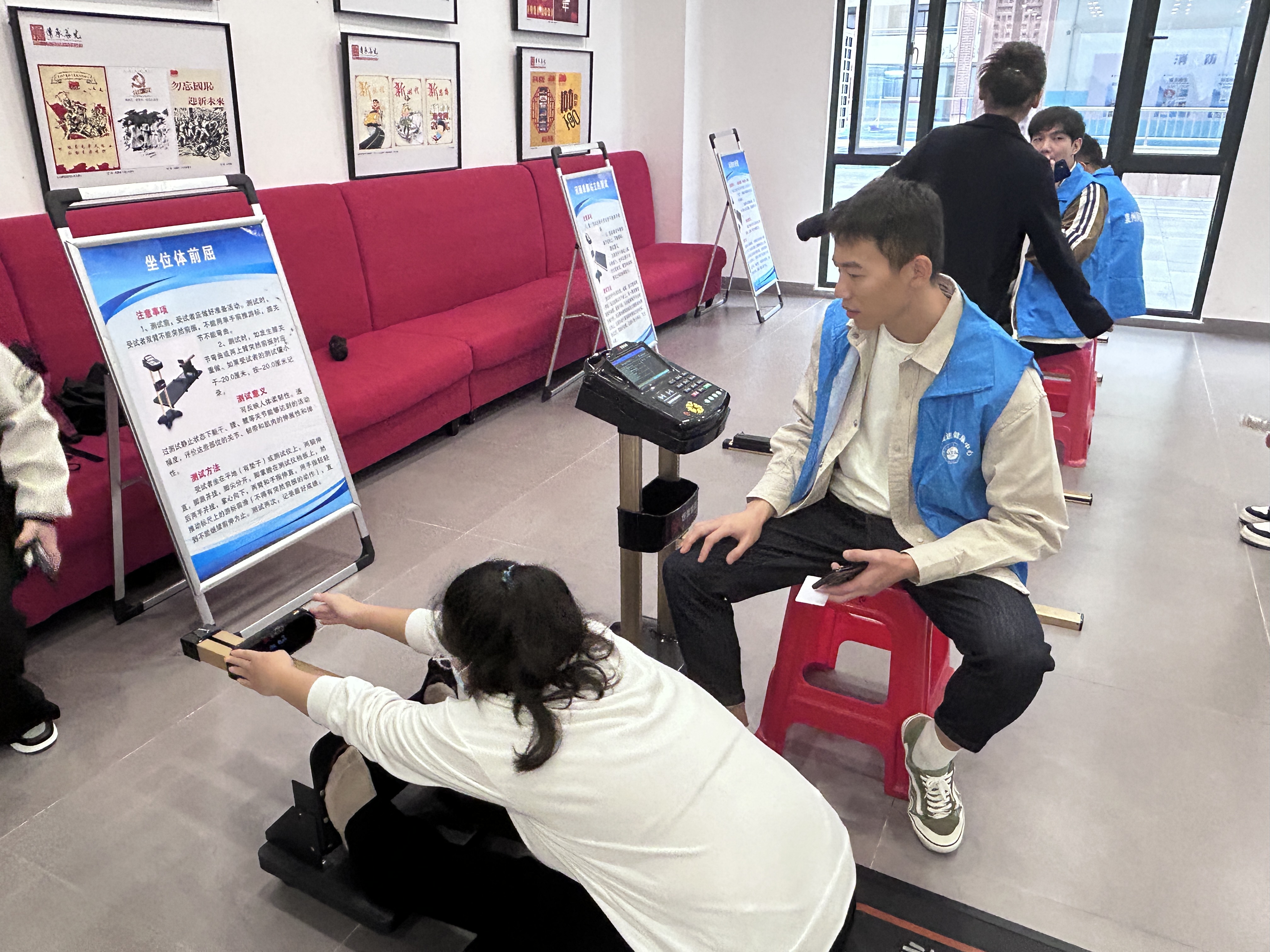 本次监测,随机抽取和测试对象为惠安县成年组500人和幼儿组100人。其中,成年组年龄段20—69周岁,幼儿组年龄段3-6岁。监测现场,工作人员对抽样对象进行了身高、体重、肺活量、反应时、纵跳、俯卧撑、仰卧起坐、坐位体前屈和单脚站立等身体形态、身体机能、身体素质等方面的数据监测,并对参加的对象发放评价报告。