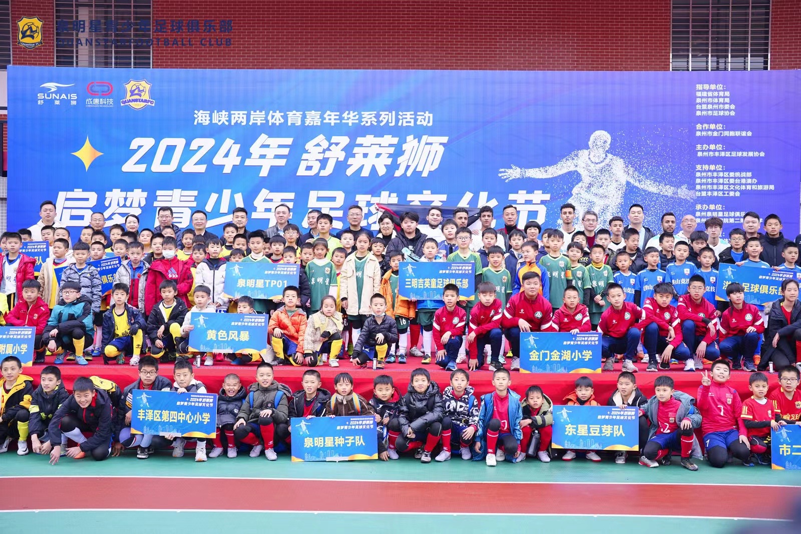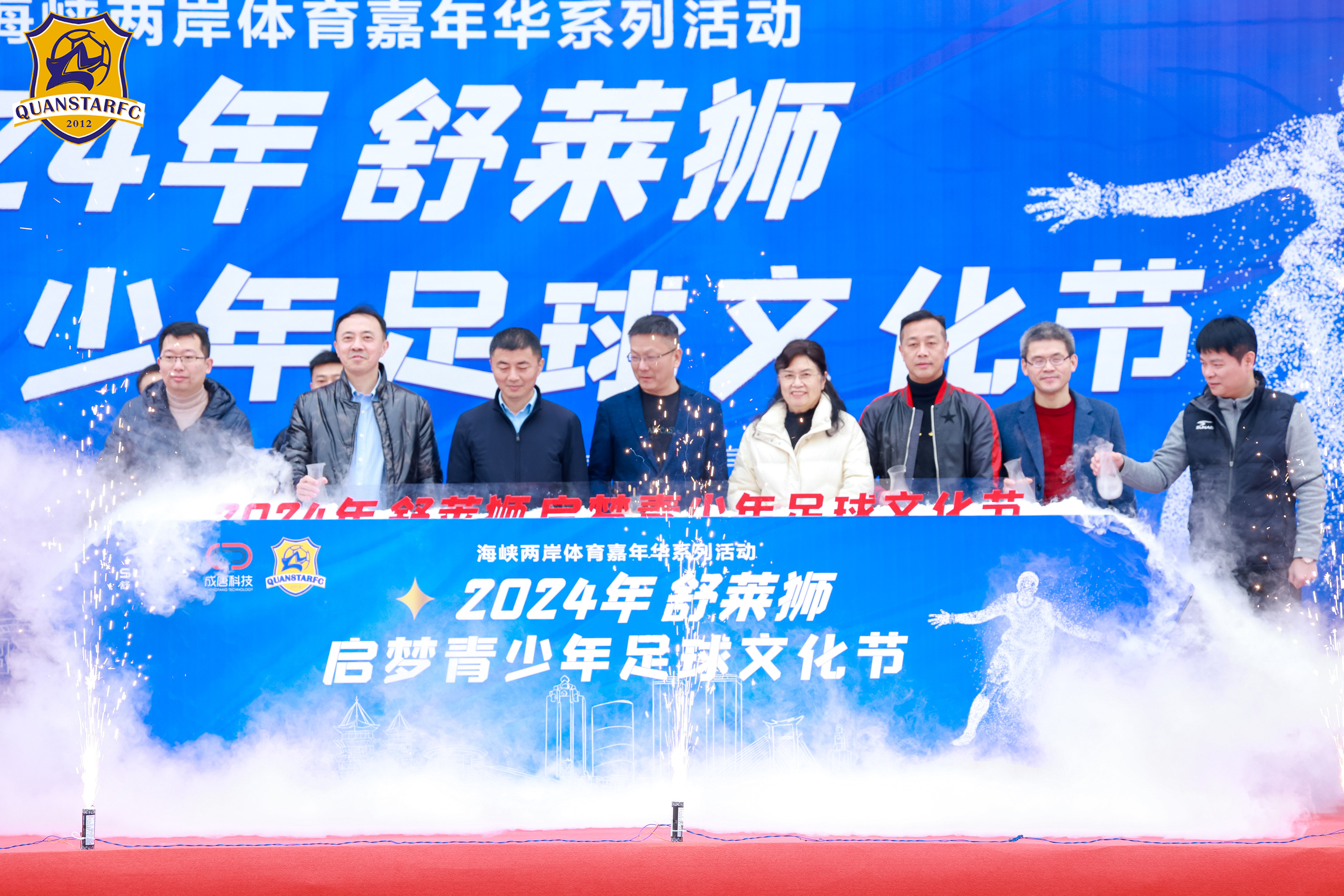 1月30日上午,2024年第四届舒莱狮·启梦青少年足球文化节在泉州师范学院开幕。同人动漫 党组成员、四级调研员张延龄,台盟泉州市委会专职副主委蒋碧辉,泉州市金门同胞联谊会会长林荣,丰泽区委统战部常务副部长陈旭东,丰泽区委台港澳办主任庄钟芳,丰泽区委统战部二级主任科员刘月婷,泉州市足球协会常务副会长陈兴,福建省体育局青少处三级主任科员梁宏榕,丰泽区文化体育和旅游局副局长徐显光,泉州市金门同胞联谊会副会长张亚轮,台盟丰泽区工委会副主委洪文章,泉州师范学院第二附属小学校长洪丽菊、副校长黄友锋,丰泽区足球发展协会秘书长吕劲松,福建舒莱狮体育总经理丁锦泉,福建通达信科技总经理颜培强,泉州泉明星足球俱乐部总经理黄鸿江等领导嘉宾出席开幕式。